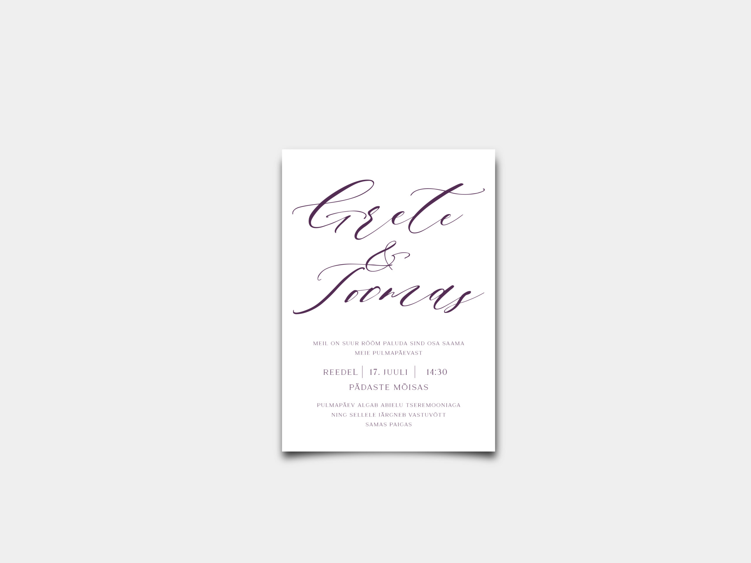 Pildil oleva kaardikujundusetekst on näidis, mille asemele ootame Sinu vajaduste kohast ja personaalset pulmakutse sisendit. Loomulikult lubame oma pulmakutse teksti kirjutamisel meie näidisest šnitti võtta.